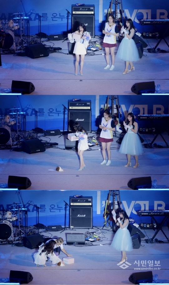 하지만 아이유는 선물로 받은 케이크를 받자마자 떨어뜨렸고, "죄송해요"라며 당황한 기색을 보였다.