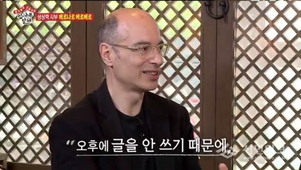 베르나르는 아침마다 4시간씩 글을 쓰는 게 자신의 루틴이라고 설명했다. 이에 양세형은 "한국에 와서도 아침에 글 쓰는 것을 하시는 거냐"고 물었다.