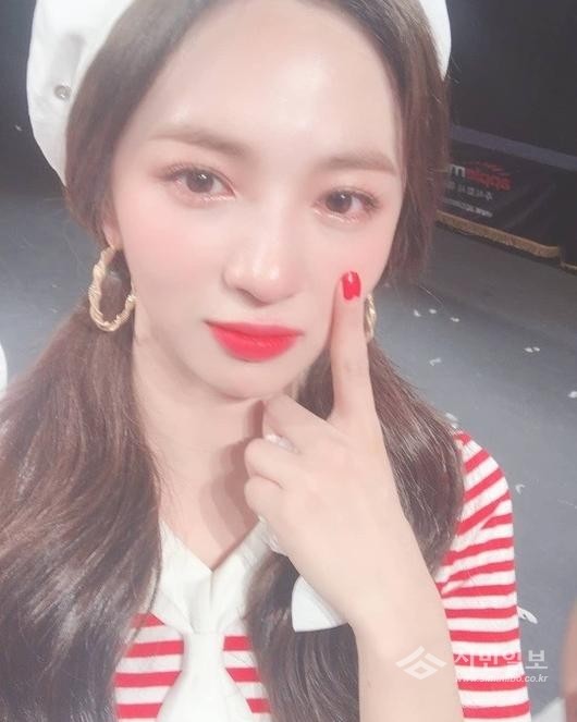공개된 사진 속 지원은 눈물을 흘려 빨개진 눈을 가리키고 있는 모습이 담겨있다. 마린걸 컨셉으로 발랄함을 더하고 있는 지원의 모습이 상큼함을 자아낸다.