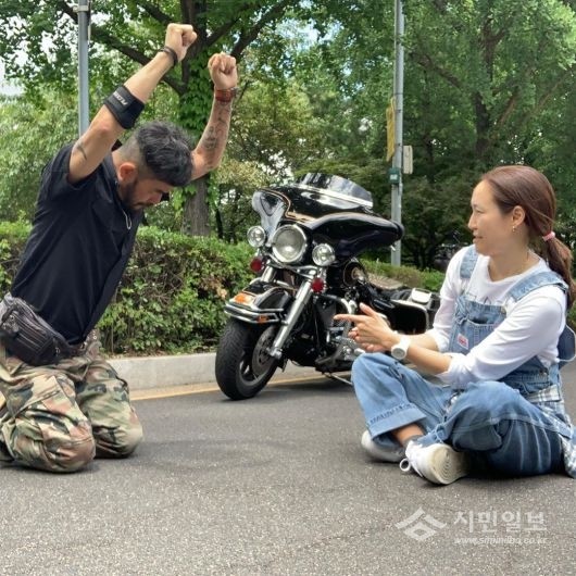 23일 강주은은 자신의 인스타그램에 최민수와 찍은 유쾌한 사진을 게재했다. 사진 속 강주은과 최민수는 다양한 포즈를 취하고 있다. 라이딩을 함께 한 듯한 두 사람은 편안하게 길에 앉은 채, 카메라를 보며 환한 미소를 짓고 있다.