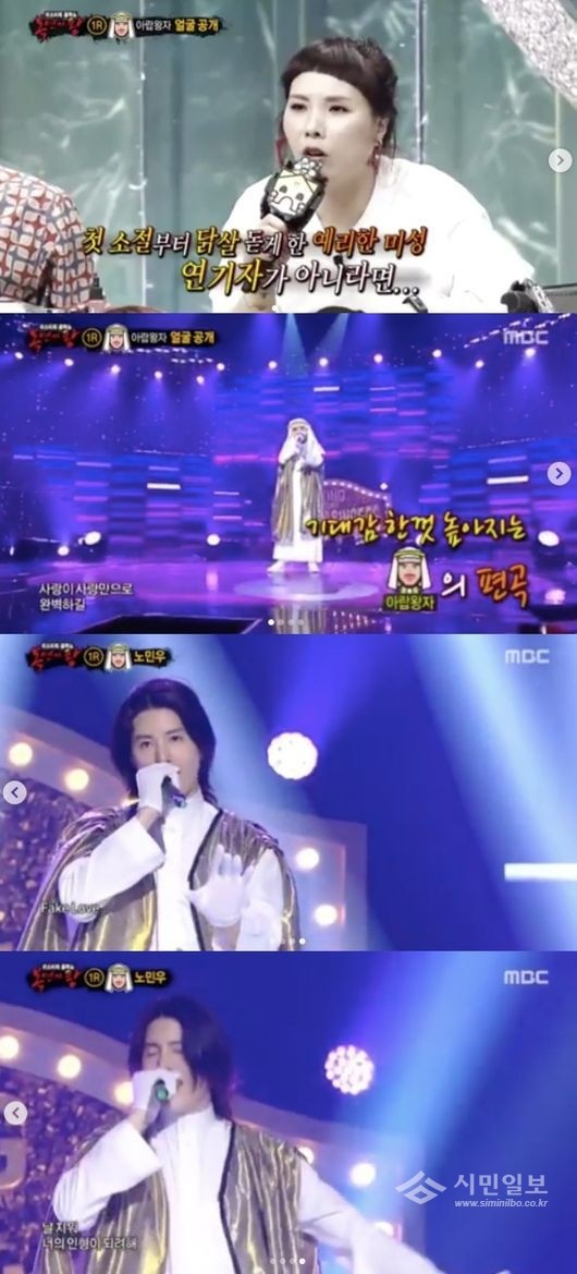 그는 23일 저녁 방송된 '복면가왕'에서 복면 가수 아랍왕자로 출연했다. 노민우는 1라운드에서 아쉽게 패배, 방탄소년단(BTS)의 히트곡 'FAKE LOVE(페이크 러브)'를 부르며 정체를 공개해 시선을 사로잡았다. 특히 노민우는 'FAKE LOVE'를 자신만의 스타일이 가미된 록 버전으로 편곡, 청중평가단을 놀라게 했다.