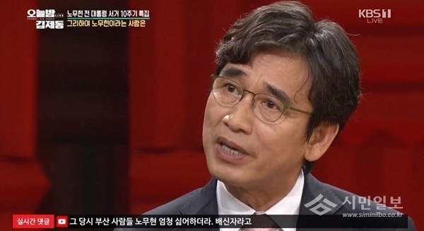 과거 방송된 KBS1 '오늘밤 김제동'에서는 노무현 전 대통령 서거 10주기 특집으로 유시민 노무현 재단 이사장이 게스트로 출연해 다양한 이야기를 나눴다.
