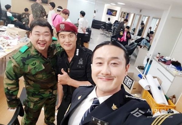 사진 속 김원효는 코미디언 송병철, 김준현과 함께 KBS2 예능프로그램 '개그콘서트' 코너 '비상 대책 위원회' 분장을 하고 함박웃음을 짓고 있는 모습으로 훈훈함을 자아냈다.