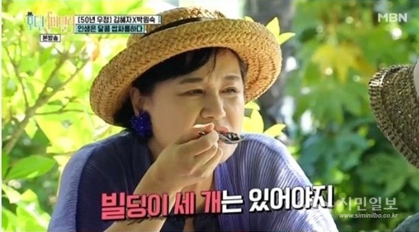 박원숙이 “28년간 아프리카 봉사활동을 얼마나 갔냐”고 묻자 김혜자는 “30번 다녀왔다”고 말했다. 박원숙이 “그렇게 봉사활동하고 30년간 CF 찍었으면 빌딩이 3개는 있어야겠다”고 말했고 김혜자는 “아무 것도 산 게 없어”라며 웃었다.