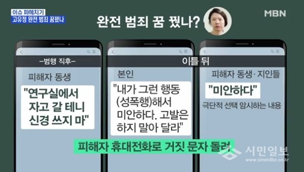이어 "고유정은 범행 직후 전 남편 친동생에게 가짜문자를 보냈다. 전 남편의 휴대전화로 '연구실에서 자고 갈테니 신경쓰지 말라'는 내용"이라며 "고유정은 살해 이틀 뒤에도 전 남편 휴대전화로 자신과 전 남편 동생 그리고 친구들에게 문자를 보냈다"고 전했다.