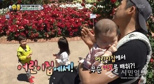 이날 소풍에 나선 라원이는 '여보'라고 부르며 남자친구 예준이를 찾아 나서 모두를 깜짝 놀라게 했다. 라원이는 아빠 앞에서 보이던 '애줌마' 면모와는 달리 애교 가득한 모습이었다.
