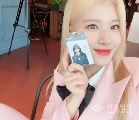 트와이스 멤버 사나가 사원증 인증샷으로 눈길을 끈다.