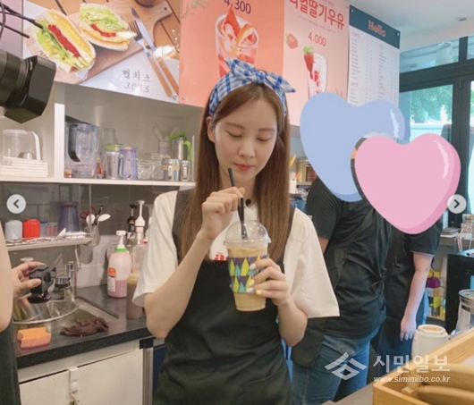 공개된 사진 속 서현은 바리스타로 변신한 모습이다. 앞치마를 허리에 두르고, 파란 체크 무늬의 머리띠를 착용했다. 수수한 차림에도 청순한 미모를 내뿜고 있어 눈길을 끈다.