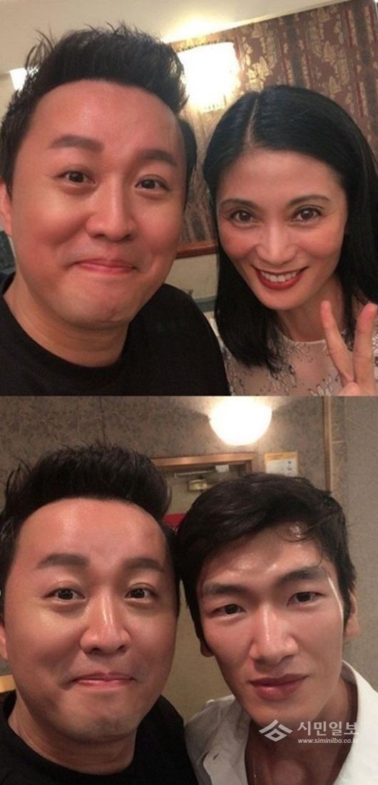 공개된 사진 속 정준하는 발레리나 강수진, 배우 김남진과 함께 셀카를 찍고 있다. 특히 그들은 서로 밀착한 채 다정한 분위기를 자아내 눈길을 사로잡는다.