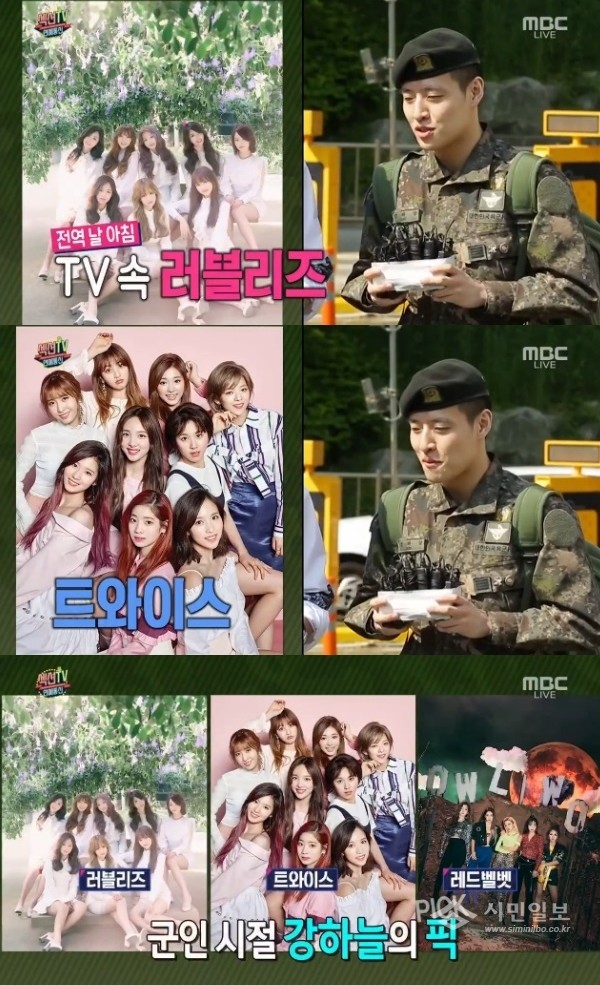 이어 군 생활 의지 되었던 걸그룹에 대해서는 “오늘 아침에 본 분들은 러블리즈다”라며 “트와이스, 레드벨벳도 있다”라고 말했다. 리포터가 “세 그룹만 좋아했다?”라고 몰아가자 강하늘은 “더 많은데..”라고 당황하다가 “아시잖아요”라고 너스레를 떨었다.