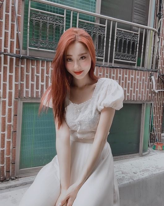 공개된 사진 속 경리는 흰색 원피스를 입고 청순한 매력을 발산하고 있다. 경리의 붉은색 헤어스타일이 눈길을 끈다.