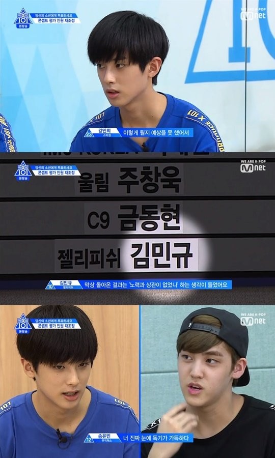 김민규는 “정말 절실했는데 방출되서 충격이 컸다. 이제는 열심히 안 하고 잘 할 수 있는데 아쉬웠다”고 울먹였다. 김민규는 방출된 연습생들 사이에서 “난 이제 등수도 떨어지고 팀에서도 방출됐다. 무서운 게 없다. 독기 생겼다”고 털어놨다.