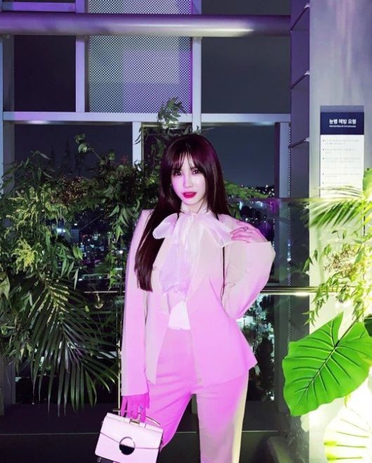 치명적인 눈빛과 새빨간 레드립이 전효성의 섹시함을 더 돋보이게 한다. 핑크빛 수트도 완벽하게 소화해내 눈길을 끈다.