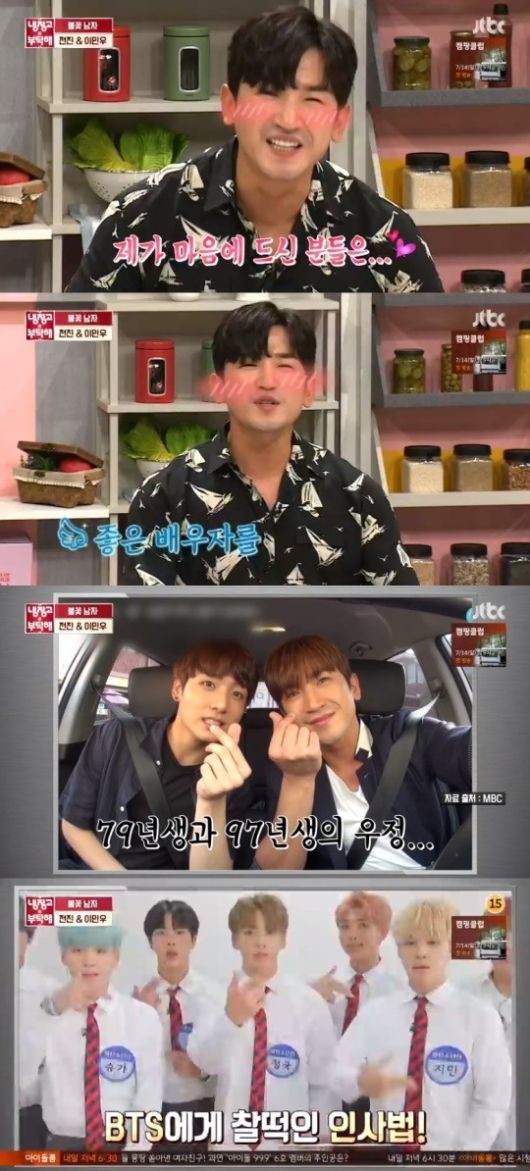 그러면서 이민우는 "좋은 배우자를 찾는다"라며 공개구혼을 해 웃음을 자아냈다. 또 이민우는 방탄소년단 정국과 의외의 친분을 공개하며 "나는 79년생, 정국이는 97년생이다"라고 말했다.그러면서 이민우는 " 아이돌과 운동이라는 연결고리로 친해져서 지금도 연락한다"고 말했다.