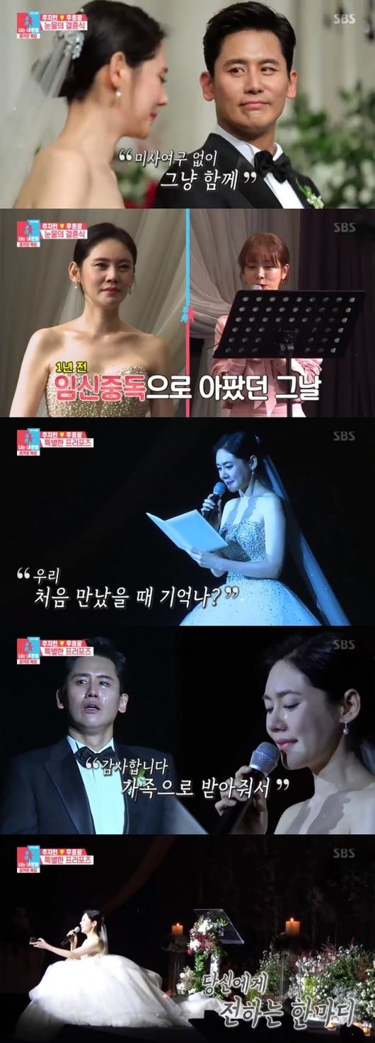 추자현은 무릎을 꿇은 채 "다음 생이 있다면 당신을 꼭 만나고 싶다. 지금 당신께 다음 생에도 결혼하자고 프러포즈를 준비했다"라며 청혼했고, 우효광 역시 감동의 눈물을 흘렸다.