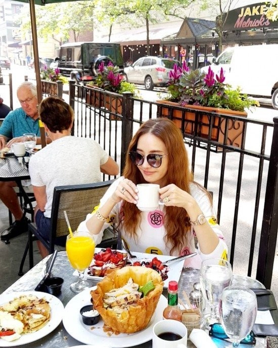 공개된 사진 속 한채영은 미국 시카고로 휴가를 떠난 모습. 한채영은 우아하게 브런치를 먹으며 행복한 일상을 공유, 팬들을 미소 짓게 만들었다.