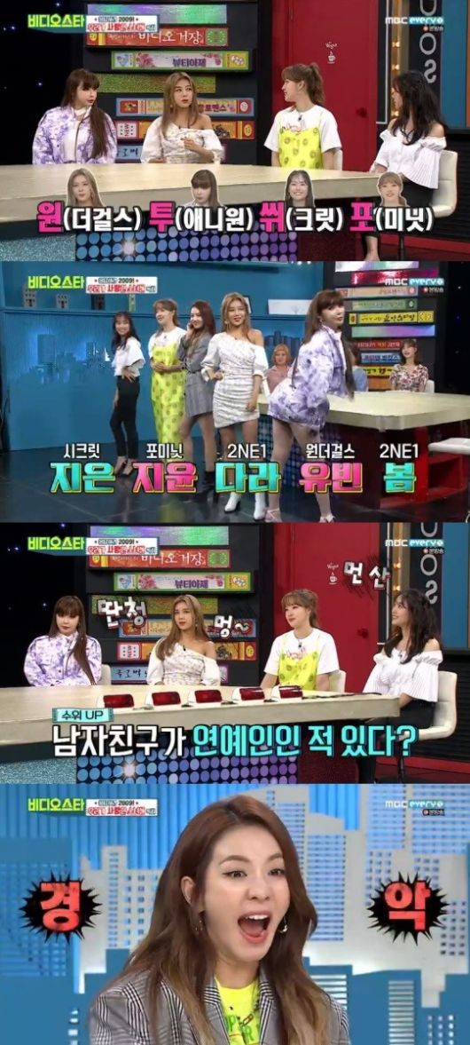2일 방송된 MBC에브리원 ‘비디오스타’는 2NE1 박봄, 원더걸스 유빈, 포미닛 전지윤, 시크릿 송지은이 출연, ‘응답하라 2009! 우리가 사랑한 소녀들’ 특집으로 꾸며졌다.