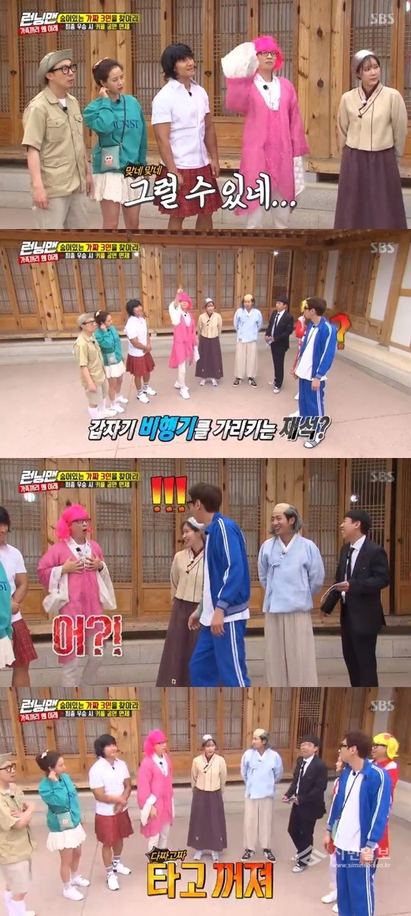 이날 멤버들은 숨어있는 가짜 3인 찾기에 나섰다. 그때 이광수를 나름 예리한 추리에 나섰고, 유재석은 그에게 하늘을 바라보라 지시했다.