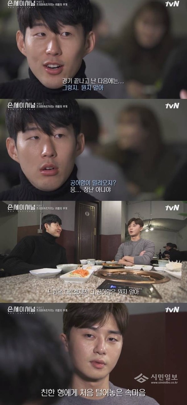 이날 방송에서 손흥민은 "경기 끝나고 난 다음 날은 굉장히 허전하다"고 말문을 열었다. 이에 절친한 친구 박서준은 "뭔지 안다. 공허함이 밀려오더라"고 공감했다.
