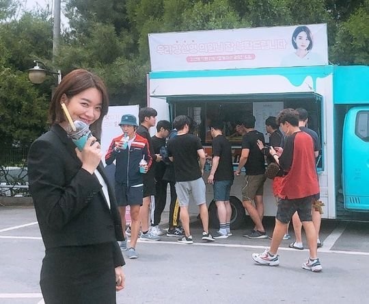 공효진은 "드라마 '보좌관'과 배우 신민아를 응원합니다", "우리 강선영 의원님 잘 부탁드립니다. 강선영 의원 안방 1열 보좌관 공효진 드림" 등 메시지와 함께 커피차를 선물했다.