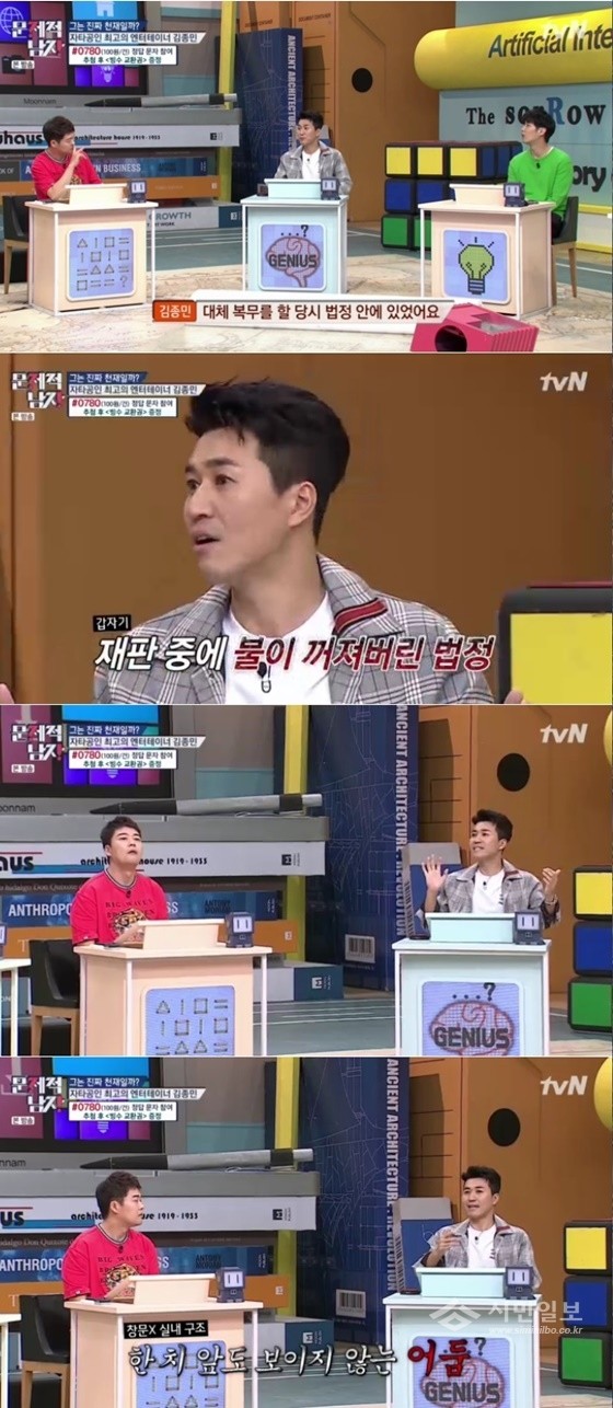 이날 방송에서 김종민은 "재판 중에 갑자기 정전이 났다. 이때 '무슨 일이 발생하지 않을까'라는 생각이 들었다"라고 말문을 열었다.