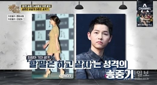 최근 방송된 종편채널 채널A '풍문으로들었쇼'(이하 풍문쇼)에서는 송중기 송혜교의 이혼에 얽힌 이야기들을 다뤘다.