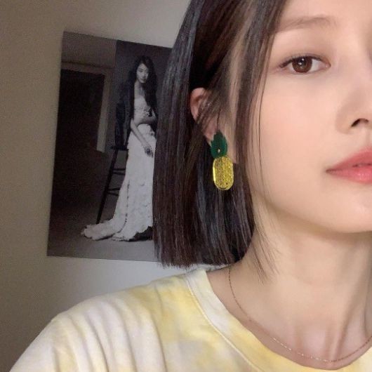 공개된 사진 속 이현이는 수수한 메이크업을 하고 한쪽 눈을 가린 채 셀카를 찍는 모습. 칼단발 머리 사이로 깜찍한 파인애플 귀걸이가 눈에 띈다. 뒤편에 있던 과거 화보 속 이현이가 지켜보고 있어 섬뜩하게 느껴진다.