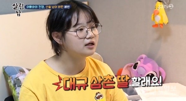 이날 혜빈 양은 아빠를 애타게 불렀다. 늦게 잠든 김성수는 “미치겠다 진짜”라며 자리에서 일어났다. 혜빈 양의 방을 찾아간 김성수는 “방 봐라. 옷 입었으면 제 자리에 둬라”라고 화를 냈다.