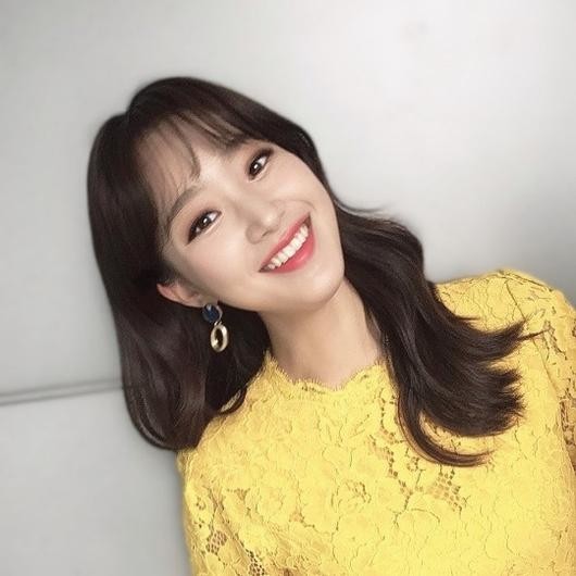 사진 속 주시은은 노란 블라우스를 입고 웨이브 헤어스타일로 세련된 분위기를 자아낸다. 주시은의 미소가 상큼하다.