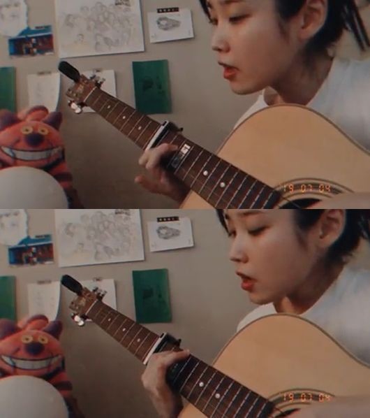 공개된 영상 속에서 아이유는 편안한 차림으로 기타연주에 심취, 특유의 감미로운 음색으로 노래를 함께 부르고 있다. 수준급 기타실력은 물론, 취하게 만드는 그녀의 몽환적인 목소리가 팬들의 심금을 울렸다.