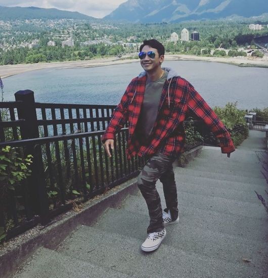 비는 4일 자신의 인스타그램에 "즐거운겨?"라는 글과 함께 한 장의 사진을 올렸다.