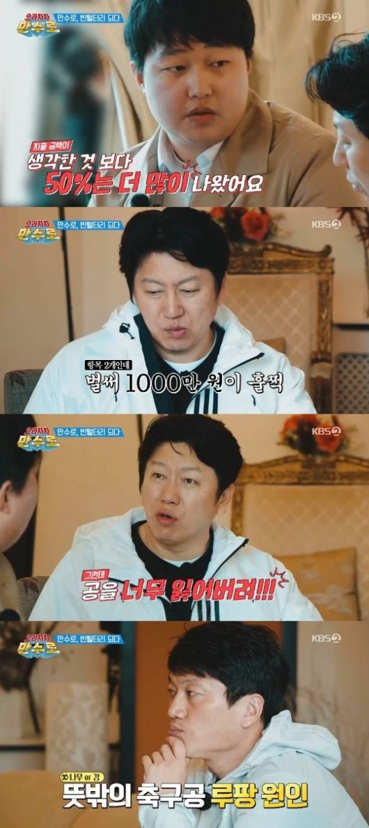 5일 방송된 KBS2 '으라차차 만수로' 에서는 생각보다 심각한 구단 운영비에 고민에 빠진 김수로의 모습이 그려졌다.