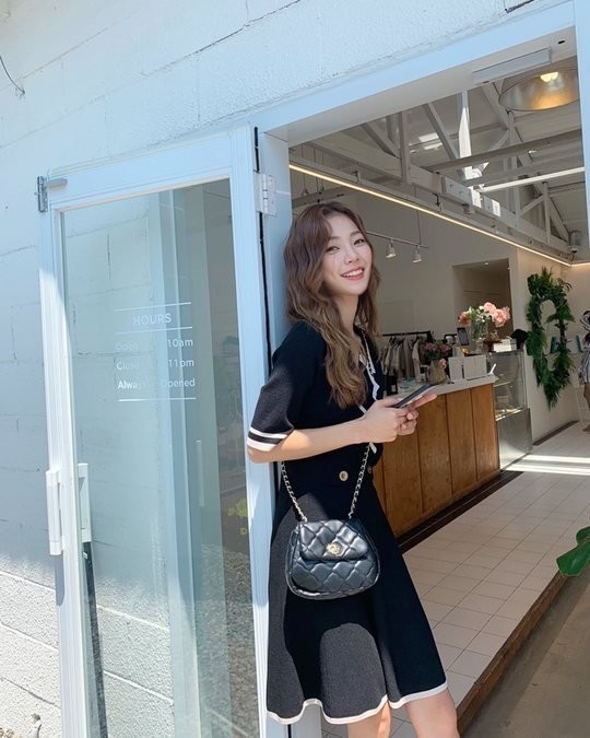 이채은은 원피스와 웨이브 헤어로 사랑스러운 매력을 발산했다.