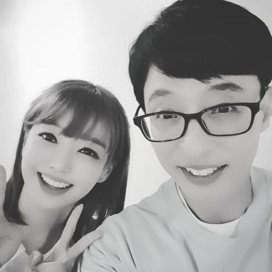 사진 속 강아랑은 한 손으로 V자를 그리며 유재석과 함께 환하게 웃고 있는 모습이다.