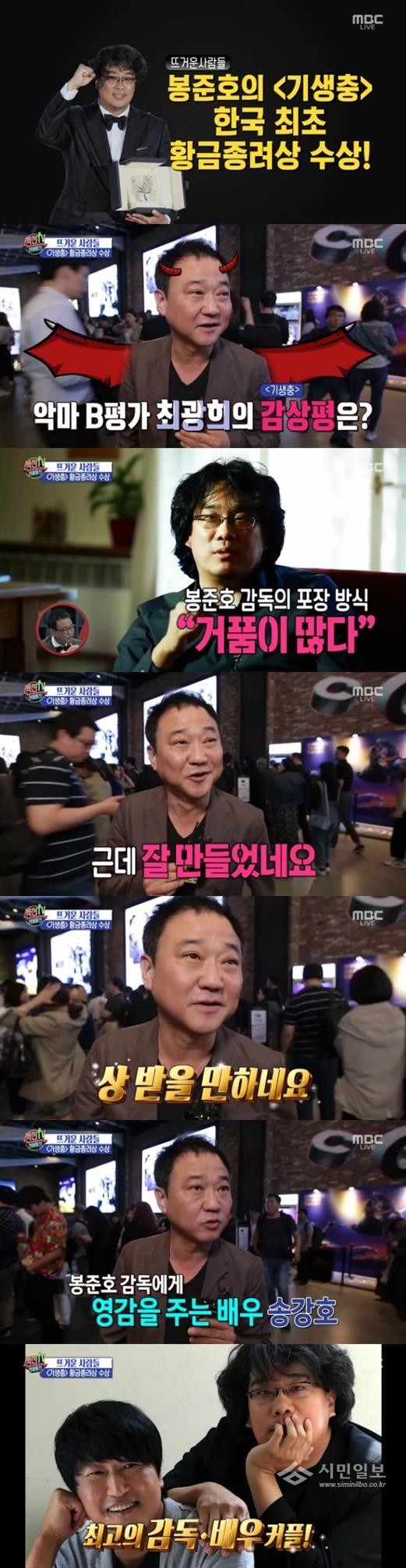 최근 방송에는 칸 황금종려상을 수상한 영화 ‘기생충’의 언론시사회 현장이 전파를 탔다.
