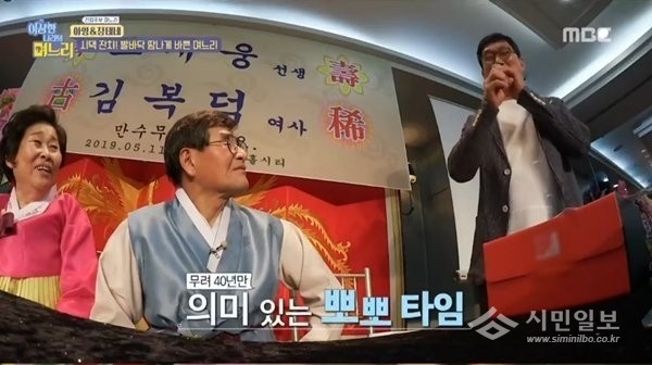이날 잔치의 MC를 맡은 고명환은 시부모님에게 뽀뽀를 권유했다. 적극적인 시어머니와는 다르게 시아버지는 거부하며 민망한 상황이 연출됐다. 이에 백아영은 직접 무대에 올라 시부모님의 뽀뽀를 응원했다. 결국 뽀뽀에 성공한 시부모님은 "40년 만에 뽀뽀"라고 뿌듯한 마음을 보였다.
