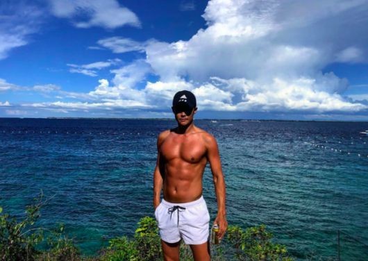 구릿빛 피부에, 초콜릿 같은 복근이 이목을 끈다.