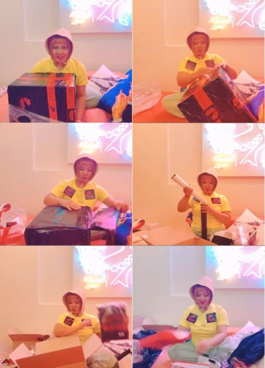 함께 올린 영상에서 박나래는 자신의 몸집 만큼 큰 선물 박스를 받고 기뻐하고 있다. 포장을 뜯고 풀며 기뻐하는 표정은 보너스. 신발, 티셔츠, 모자 등의 선물을 받고는 아이처럼 해맑게 웃어 보는 이들을 덩달아 미소 짓게 만든다.