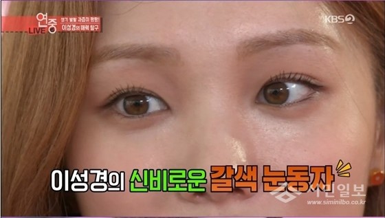 이어 김승혜는 이성경에게 "가장 물어보고 싶었던 게 있었다. 컬러렌즈를 끼냐"고 물었다. 이에 이성경은 "투명렌즈를 낀다. 눈동자 색은 부모님께 물려받은 것이다"고 밝혀 김승혜를 놀라게 만들기도 했다.