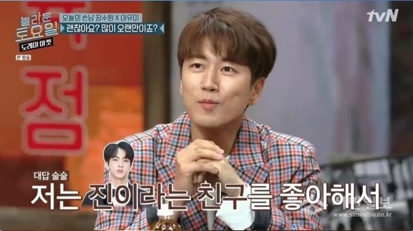 하지만 붐은 "방탄소년단 데뷔하면 누구로 데뷔하고 싶냐"고 물었고, 장수원은 진이라고 솔직히 답했다. 이에 신동엽은 "지금도 입을 계속 잘못 놀리는 것 같다"고 말해 웃음을 자아냈다.