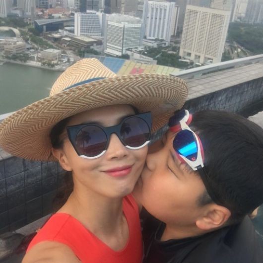 공개된 사진 속 오윤아는 아들과 함께 해외로 여행을 떠난 모습이다.