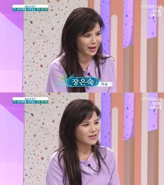 9일 방송한 KBS 1TV '아침마당' 화요초대석에는 70·80년대를 사로잡은 국민 첫사랑 가수 장은숙이 출연했다. 장은숙은 변함이 없는 외모로 모두를 놀라게 했다.