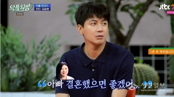 신동엽이 “만약 결혼하면 정말 많은 분들이 축하를 해주실 것 같다”고 하자 김승현은 “기회가 되면 딸이 인정하고 좋아할 만한 분을 만났으면 좋겠다”고 답했다.