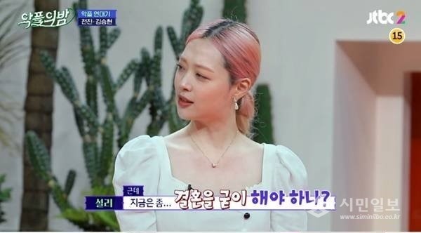 최근 방송된 JTBC2 예능프로그램 '악플의 밤' 3회에서는 설리가 과거 결혼에 대한 생각을 드러냈다.