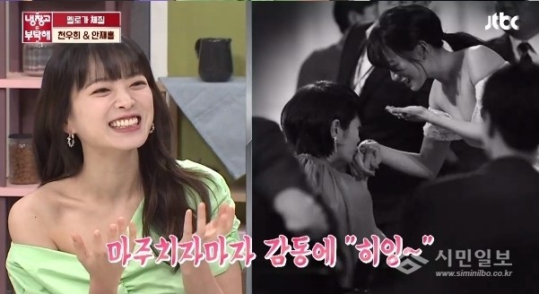 천우희는 "그때 무명 배우들의 축하 무대를 보며 눈물을 흘리고 있었다. 너무 감동받았는데 김혜수 선배님과 마주쳤고, 손등 키스를 해주셨다"고 비하인드 스토리를 밝혔다.