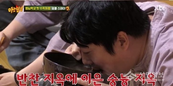 형님들은 국과 반찬을 두고 욕심을 냈다. 이수근과 김희철은 음식을 두고 티격태격해 웃음을 자아냈다. 점심을 부실하게 먹은 이수근은 음식 먹는 것에 열중했고 그것을 본 김희철은 폭소를 했다.
