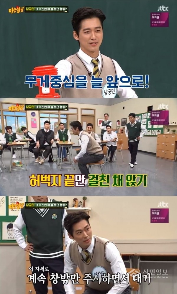 정답자는 이수근이었다. 신인시절 늘 무게중심을 앞으로 하고 앉아있었던 것. 남궁민은 “허벅지 끝만 해서 앉아 있었다. 무게 중심을 앞으로 하고 계속 창밖만 주시하고 있었다”라고 설명했다.