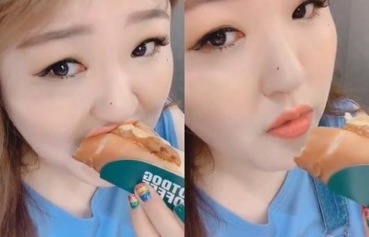 공개된 영상 속 이국주는 핫도그를 맛있게 먹고 있다.