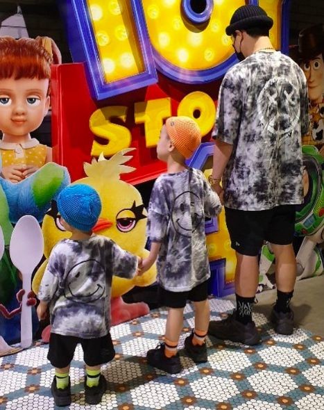 특히 사진 속 하하 3부자는 비슷한 디자인의 티셔츠를 입고 애니메이션 영화 '토이스토리4' 광고물 앞에 나란히 서 있어 시선을 모았다. 머리부터 발끝까지 뒷모습마저 붕어빵처럼 닮은 하하 3부자의 모습이 훈훈함을 자아냈다.