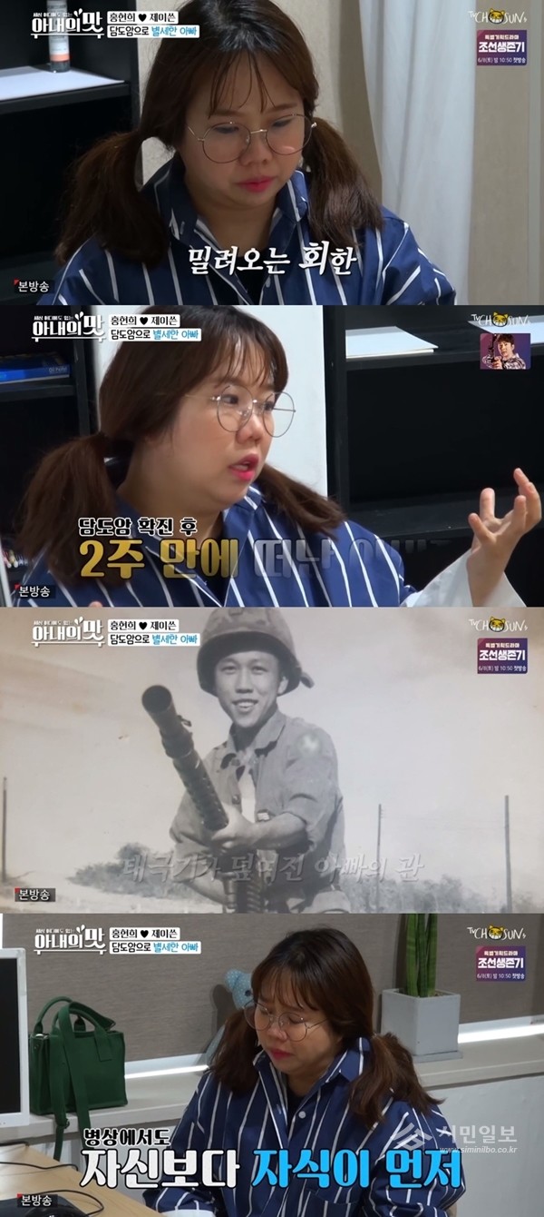홍현희는 "아빠가 월남전에 참전하셔서 나라에서 장례 절차도 마련해주셨다. 아빠의 관에 태극기가 덮였을 때 되게 명예롭게 사셨구나 싶었다. 그런데 그때 어땠는지 물어보지도 못 했다. 아빠가 되게 외로웠겠구나 싶었다"면서 눈시울을 붉혔다.